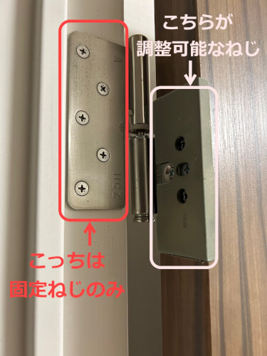 ただしこの調整で蝶番に不具合が生じても自己責任となりますので、そこも考慮の上、自分でするのか、プロに依頼するのかは判断されてください。